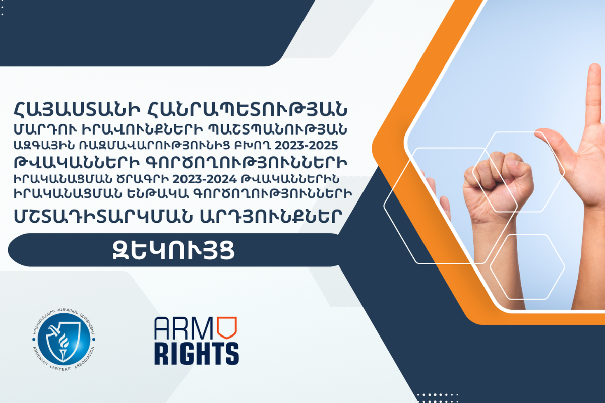 The "Armenian Lawyers' Association" NGO (ALA), in cooperation with the Network of CSOs for the Protection of the Rights of Forcibly Displaced Persons from Artsakh, has conducted public monitoring of the implementation of actions subject to execution in 2023-2024 under the Action Implementation Program for 2023-2025 derived from the National Strategy for Human Rights Protection of the Republic of Armenia.